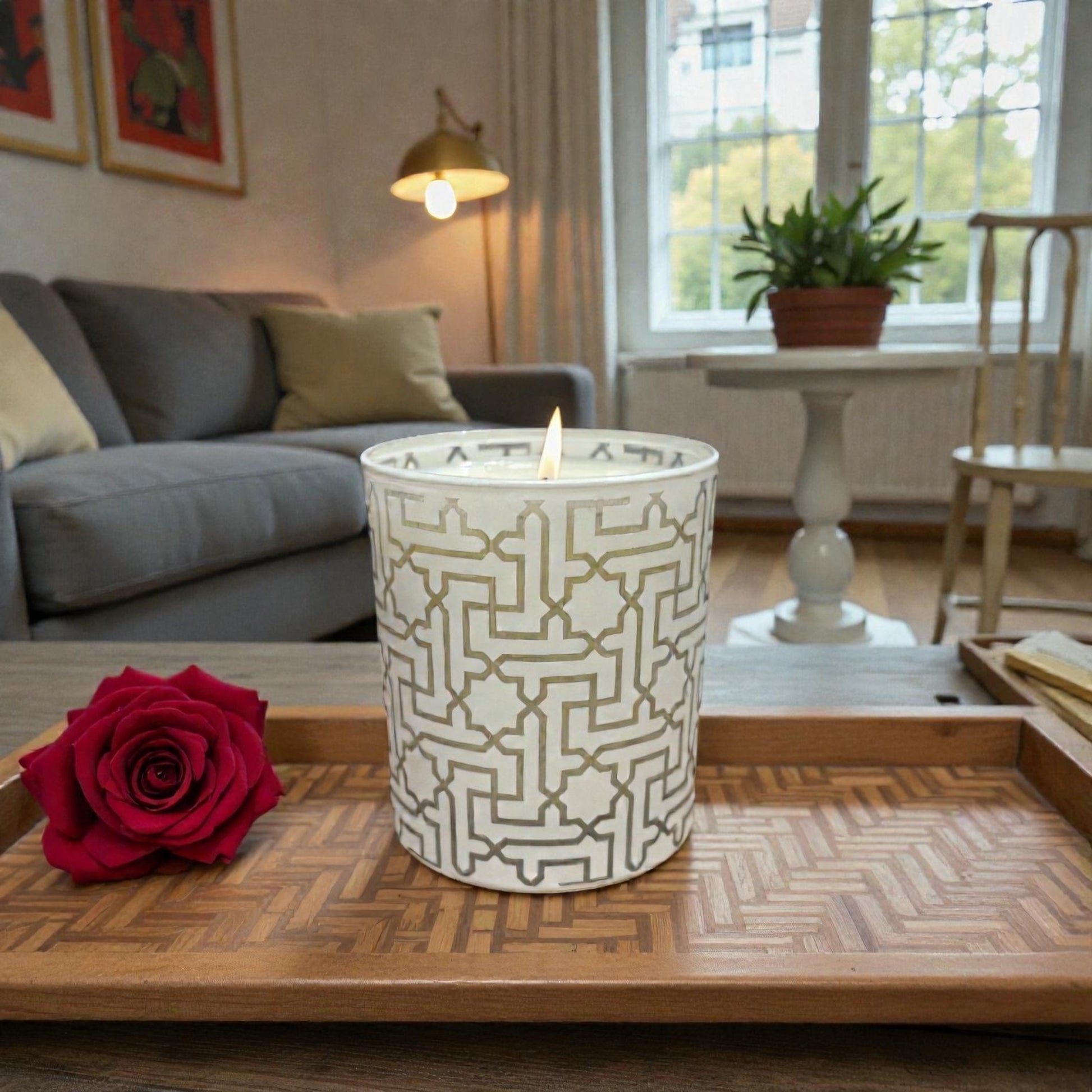 Eleve su espacio con la elegancia atemporal de esta lujosa vela y deje que cada parpadeo encienda momentos de serenidad e indulgencia.